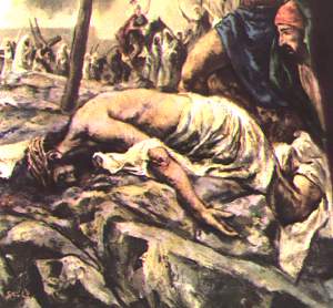 The Seventh Station: As God's own people we continue our search for a future and abiding city. The road is long and rugged, not always easy to follow. When we fall we must rise again like our Saviour on the way to Calvary. The journey is long, the burden is heavy. Once more Jesus falls to the ground and lies there until he is pulled roughly to his feet again. How difficult to get up when we are down! How difficult to rise up when we are on the bottom rung of the ladder and those above us are anxious to keep us there! Nowadays this is the situation with many minority groups who have little chance to improve their lot. Prayer |